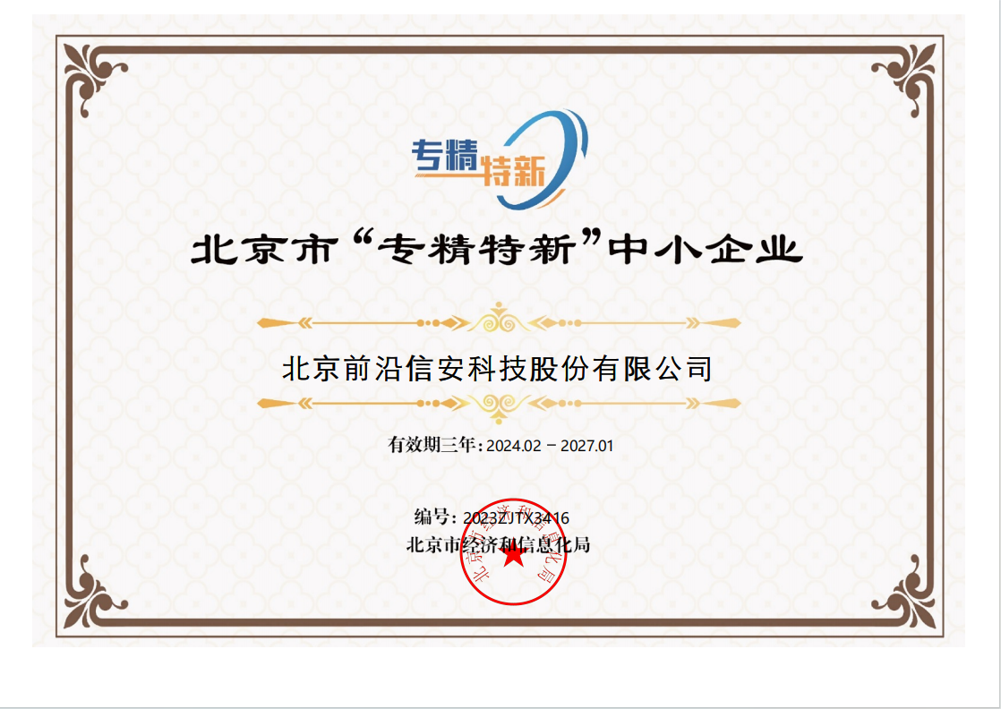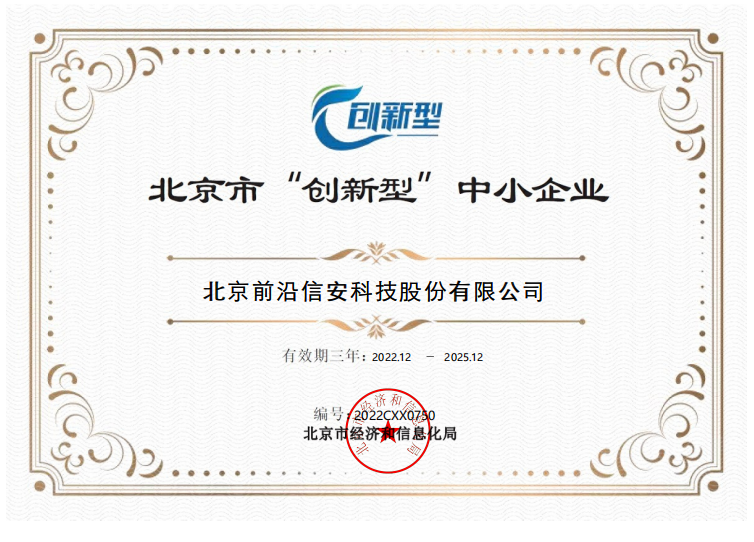 2023年4月,按照工业和信息化部《优质中小企业梯度培育管理暂行办法》(工信部企业〔2022〕63号)、《北京市优质中小企业梯度管理实施细则》要求,华体会官方端网站登录入口取得了2023年北京市“创新型”中小企业认定证书。